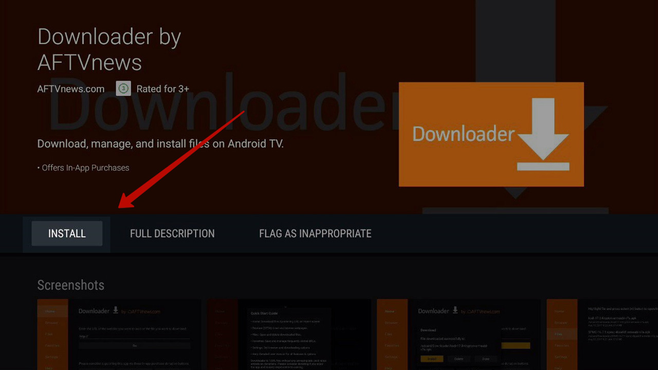 Type «Downloader» into the search bar, find the application with the orange icon and click «Install».