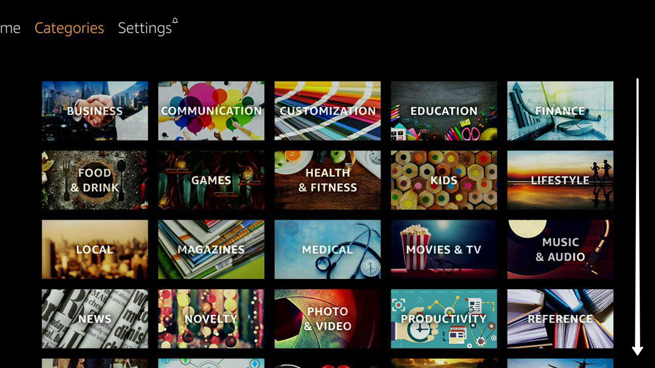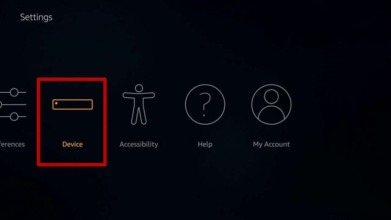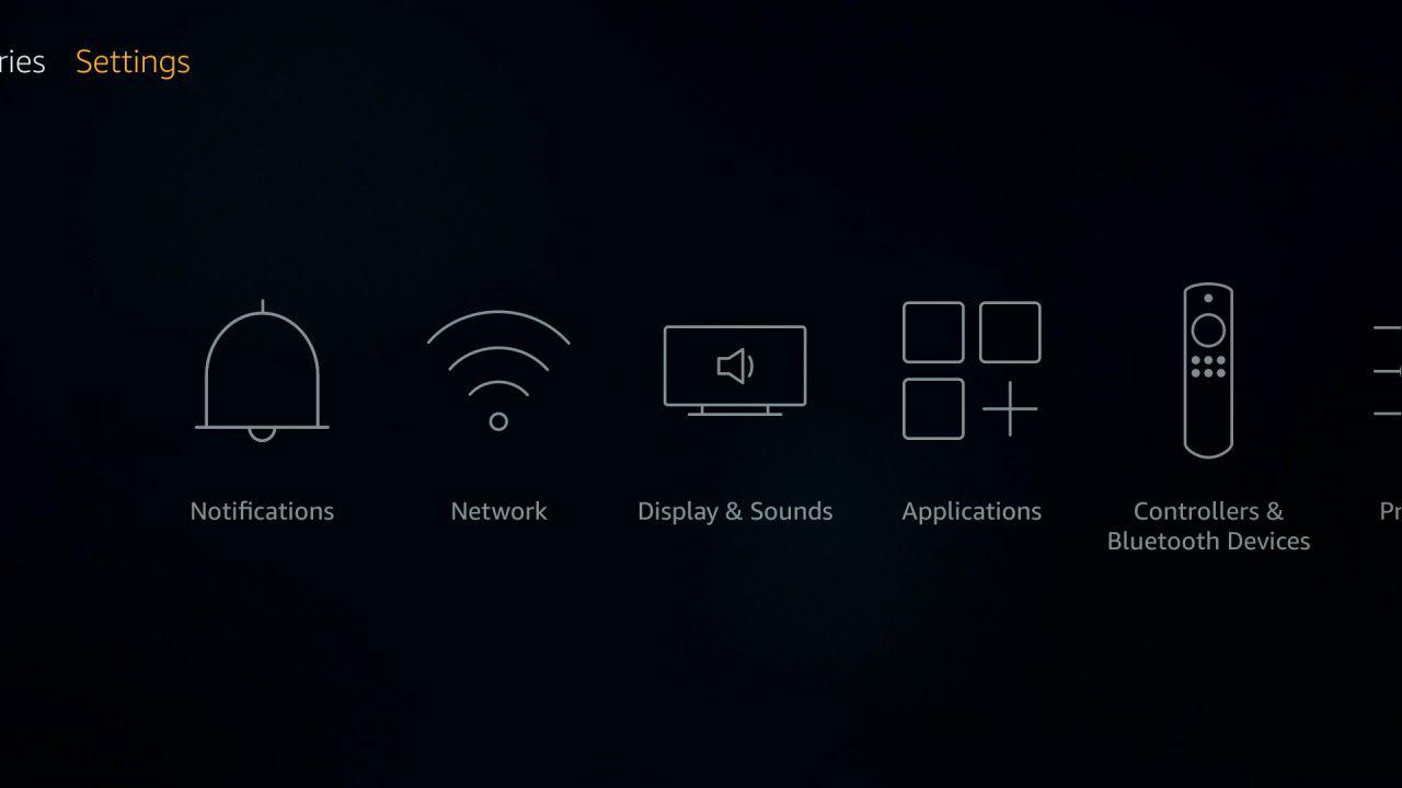 In the top menu of the Fire TV Stick (Home, Categories, Settings) select «Settings».