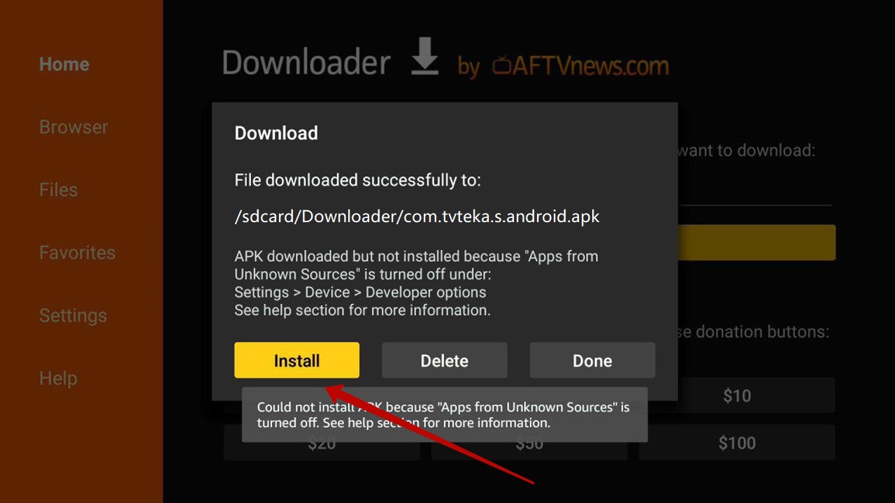 The Downloader will download and install TVteka application on your tv box, you just need to agree to all the questions.