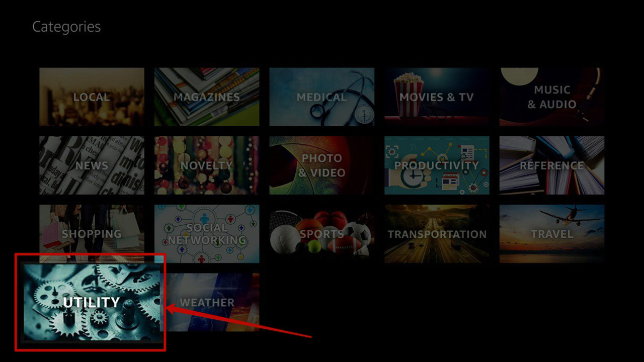 In the top menu (Home, Categories, Settings) select «Categories». Next, select the category «Utility» - it is located at the bottom of the page, in the last line of categories.