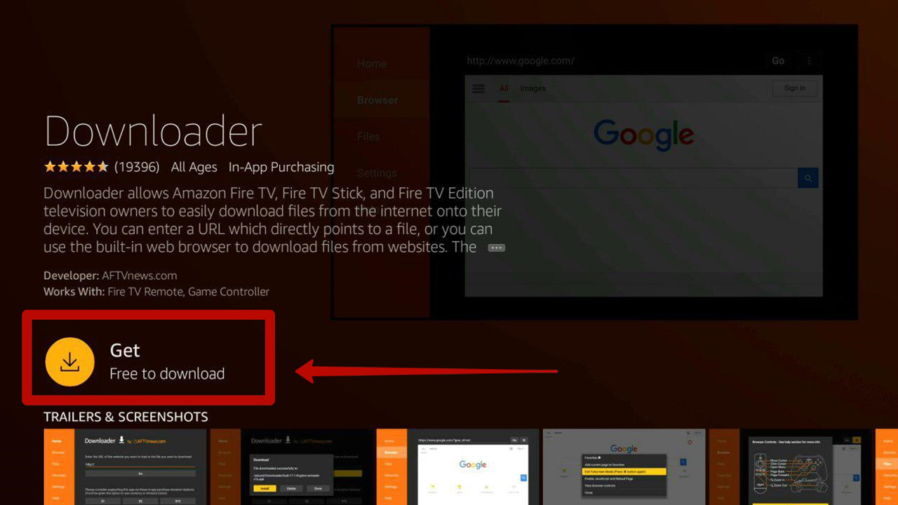 In the new window find the Downloader application with an orange icon and click «Download».