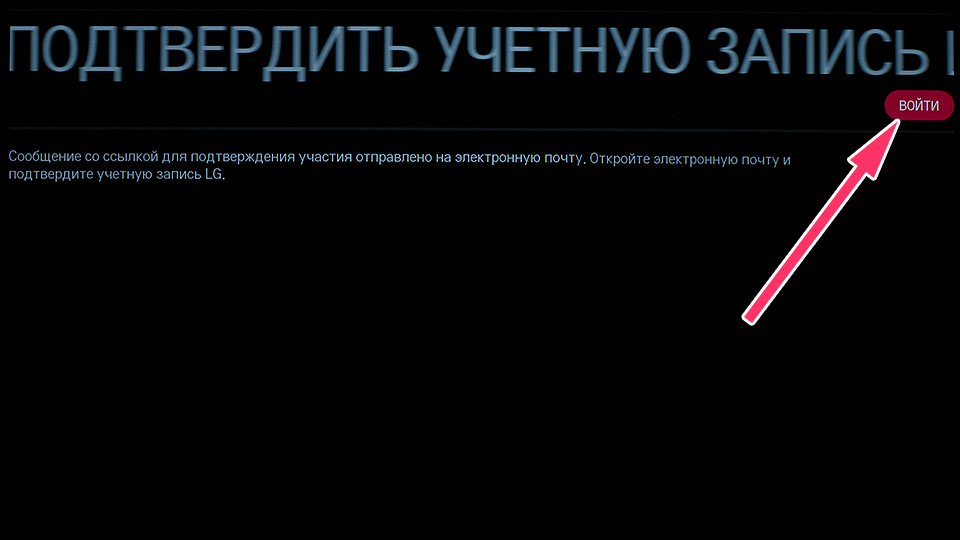 After confirming your email address, you can sign in to your LG account on the TV. Click on the «Login» button in the previous window, then the LG account login window will open. If you have already closed the previous window, repeat the first steps of this instruction. In the new window enter your email address and password from your LG account and click«ОК».