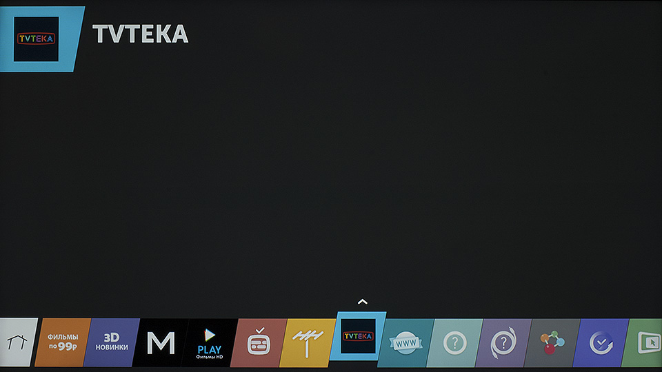 Press the «HOME» button on the remote control. On the screen that opens with a list of applications, using the «Right»remote control button, go to the second screen, select «TVTEKA» application and press «ОК» on the remote control to launch it.
