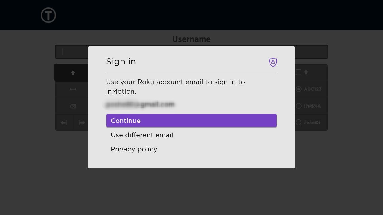 Press Continue, if your Roku and TVteka accounts are the same, or select Use different email.